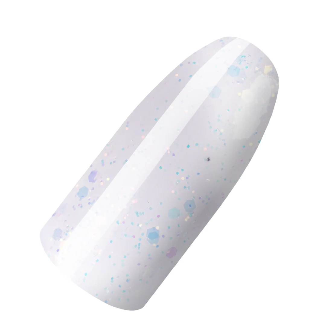 Colorless top with glitter for hybrid nail polishes.